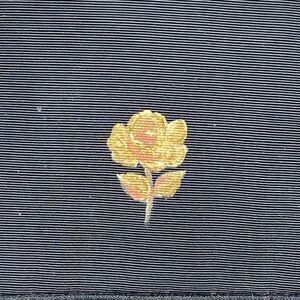 Vintage black custom hand paintedGold rose on the flap with black satin lining inside.