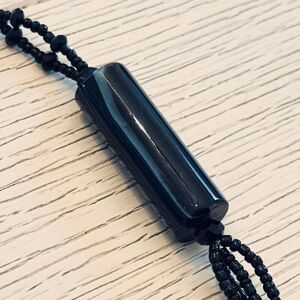 Vintage Black Onyx Tassel Necklace – 28" Natural Stone/Faceted Glass Beads