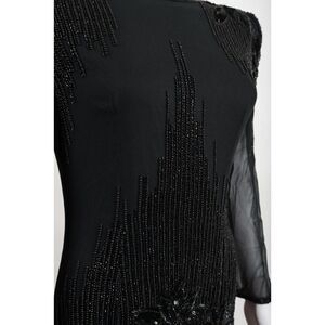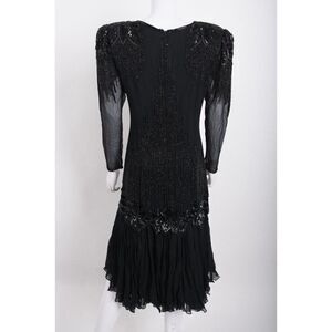 Vintage Black Tie He-Ro Womens Drp Waist Dress Sz 12 Black Beaded Sequined 80s