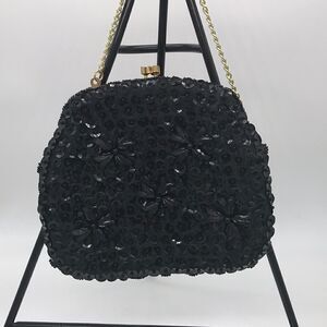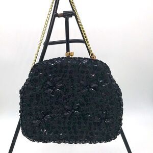 Vintage Black Beaded Tote Bag Purse