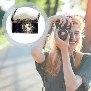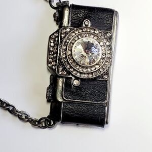 Vintage Black Camera Crystal Rhinestone Long Chain Pendant Necklace