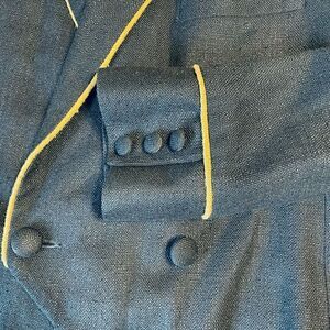 90s Vintage Gianni Black with gold trim Double Breasted Matador Jacket Blazer. Woven Rayon black fabric with gold cord trim