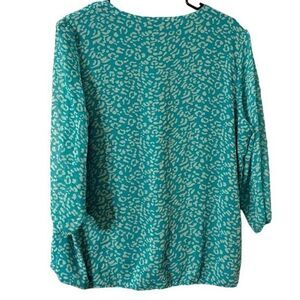 Vintage Blair Womens Blue Sheer AllOver Print Fully Lined Wrap Front Blouse sz M