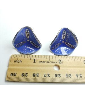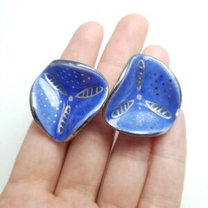 Vintage Blue Glaze Clip On Earring, Screw Backs, Retro Modernist Design Estate