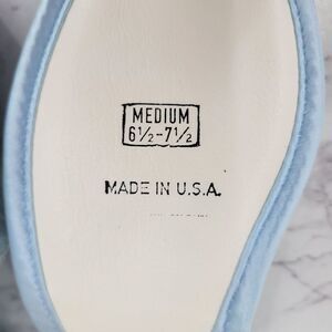 Vintage Blue Satin and Lace Women's House Slippers 60s Peep Toe