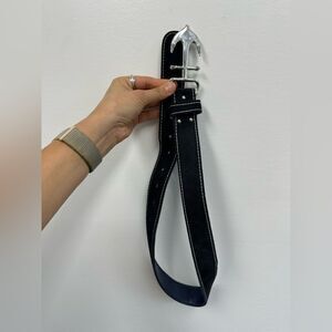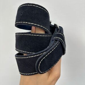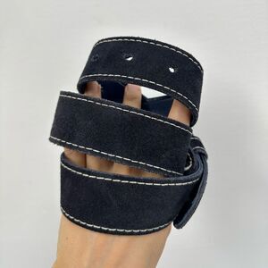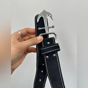 Vintage Blue Suede Leather Anchor Nautical Belt Silver Tine Buckle adjustable M