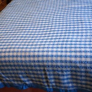 Vintage Blue and White Checkered Full Size Lightweight Blanket.