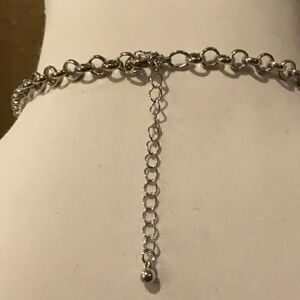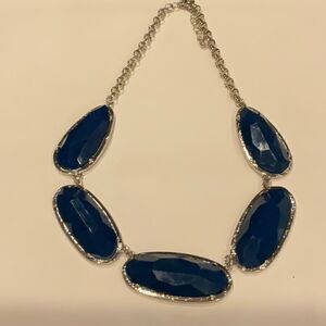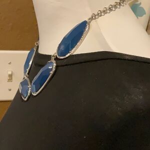 Beautiful vintage blue stone necklace set in silver with a modern vibe. Geometrical cut blue faux stone in a silver setting with silver chain, extension and a lobster claw clasp. Would look very businesslike with a nice suit.