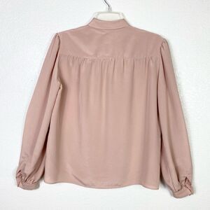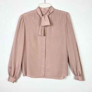 Vintage Blush Satin Ascot Neckline Cuff Sleeve Blouse