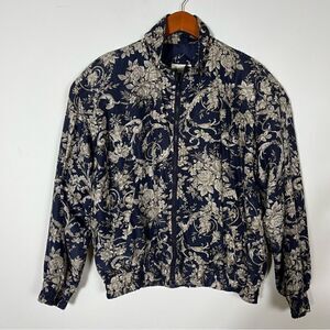 Vintage Bogari Floral Silk Bomber Jacket Size M