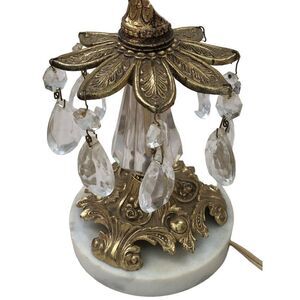 Vintage Bohemian Crystal Glass Brass Marble Table Lamp