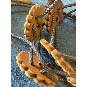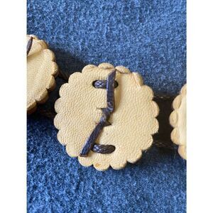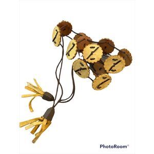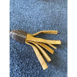 VGVC, very good condition, top of disc and fringe is leather, back side and lacewing is man made material, approximately 40” long including fringe,
