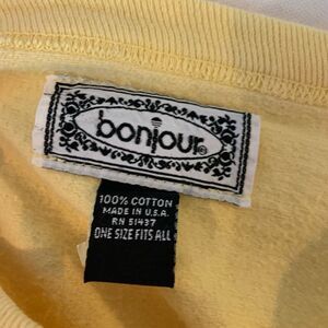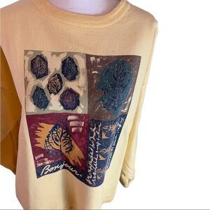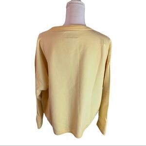 This sweatshirt is so rad! It’s in fantastic condition, yellow with fall leaf print. It’s labeled as one size fits all and I would say it could fit small-medium as a baggier fit or large-xlarge for a more fitting look. This would look so amazing with high waisted shorts or jeans loosely tucked in the front.