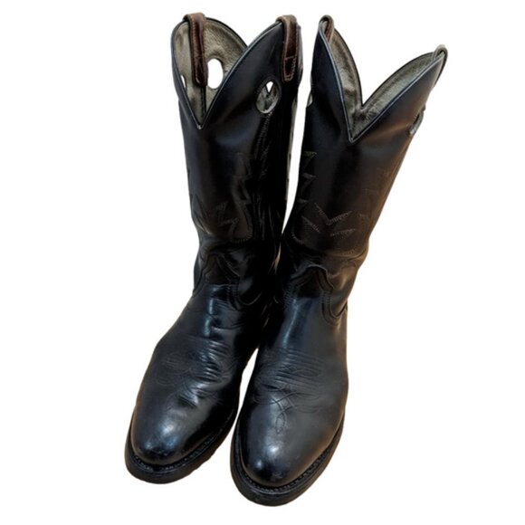 VintageBouletWesternTwoToneRealLeatherCowboyRubberBootsBlackMen75