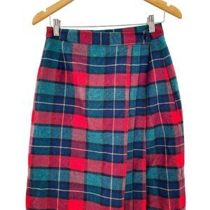 Vintage Boundary Waters Plaid Wool Pleated Midi Skirt 12