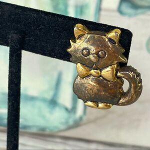 Not sure what type of metal these are. 3D kitties in bow ties, Post back