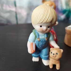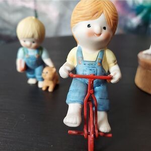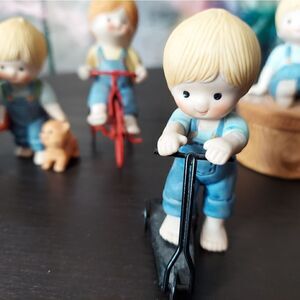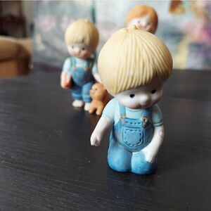 6 Vintage Boy/Girl Figurines Bib Overalls Enesco Blonde Jeans 1980-1982