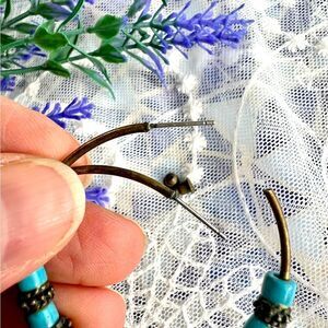 Fabulous old 1.75” hoops. Patina’d brass hoops with detailed brass beads and original brass backs.
