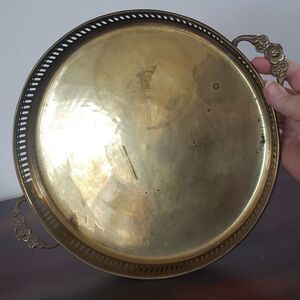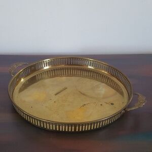Vintage Brass Vanity Tray with Floral Designed Handles