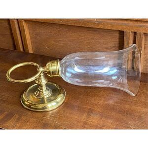 Vintage Brass Wall Sconce with Glass Shade Dutch Colonial Ring 11” tall