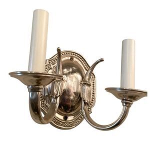 Vintage Bronze Silver Color Ornate Oval Wall Sconce Two Light