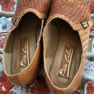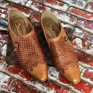 Vintage Brown leather weave booties piña colada brand excellent use condition no damage made in Brazil. These feature won inch heel height.