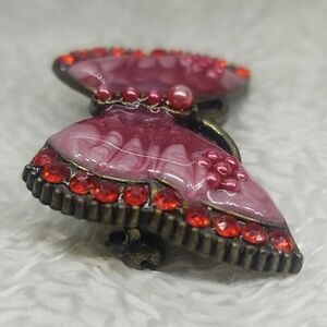 Vintage Butterfly Pink Swirl Pearl red Crystal Pin