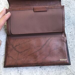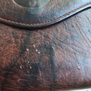 Top grain cowhide exterior trifold wallet, even has a checkbook holder, as a couple scratches on the front that I picture