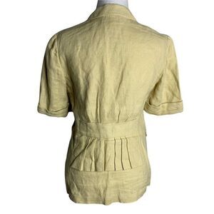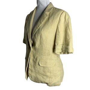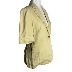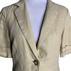 Vintage CAbi Short Sleeve Blazer Jacket S Beige Linen One Button Pockets Ruffle