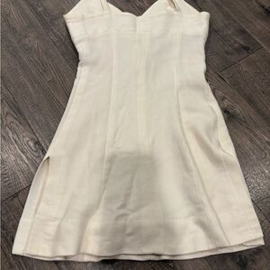 This CHANEL dress features a sophisticated sheath silhouette in a luxurious cream color, perfect for a wedding guest occasion. The strapless design with a sweetheart neckline adds a touch of elegance, while the sleeveless style ensures comfort and ease of movement. Crafted with attention to detail, this dress embodies timeless style and grace.