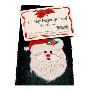 Vintage CHRISTMAS Green Guest Small Hand Towel Holiday Embroidered Santa NWT