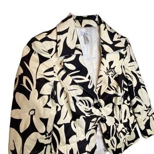 Vintage Cache 90s blazer jacket white black mod floral graphic S cotton spandex