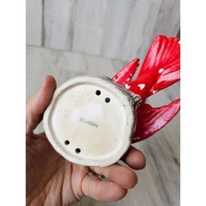 about 2.5 in tall by 6 in by 5 in, water damage on paint and flaking off, sold as is