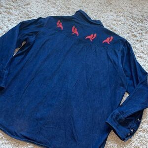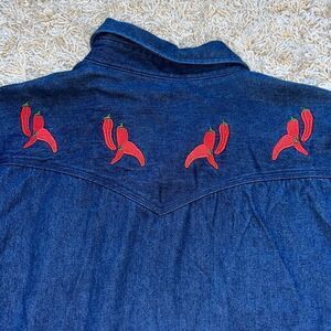 Vintage Carhartt Denim Pearl Snap Shirt Western Cowboy Men’s 2XL Chili pepper embroidery