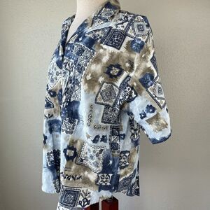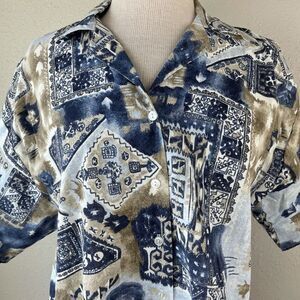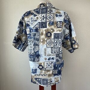Classic and vintage short sleeve button down shirt by Caribou measuring 22 inches armpit to armpit and 25 inches in length.