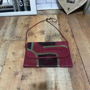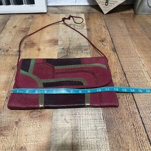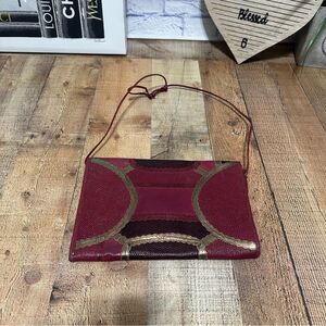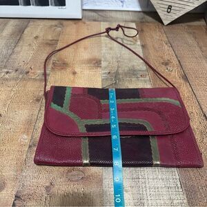 Vintage Carlos Falchi Classic Envelope Clutch Snakeskin Leather Patchwork Red