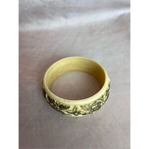 Vintage Carved Celluloid Bangle 1950s Beautiful carved floral pattern with gold overlay GVC Smoke free home