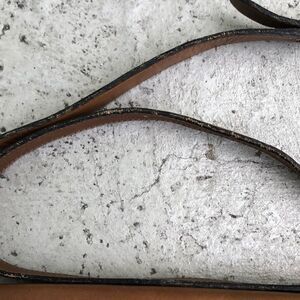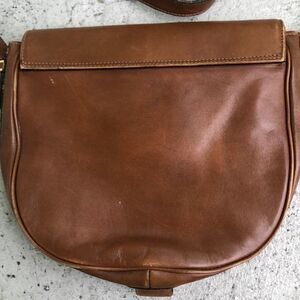 This is a nice vintage Crossbody that is in pretty good condition but as you see the strap needs touch up along the edges. And the back has 2 small little spots That would polish out. Inside is clean. Bag measures approximately eight 8 1/2 x 7 1/2 x 2 1/2