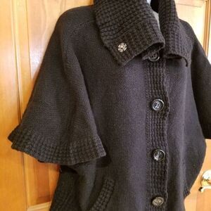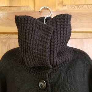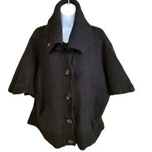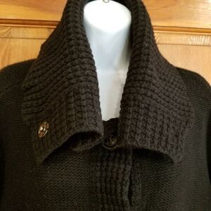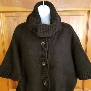 Vintage Caslon Cardigan Sweater Short Sleeve Womens L Black Chunky Knit Cowl Nec