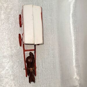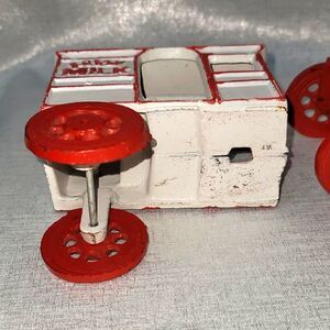 Vintage Cast Iron Fresh Milk Wagon with Horse and Milkman.