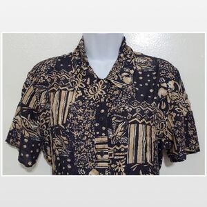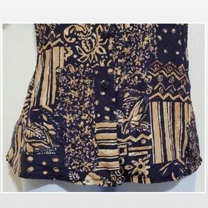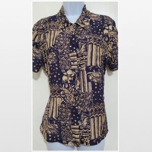 Vintage Casual Button Down Silk Blue & Tan Top