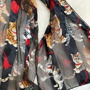 Vintage Cat Stripe Black Scarf Long Neck Kitten Sheer Kitten Animal