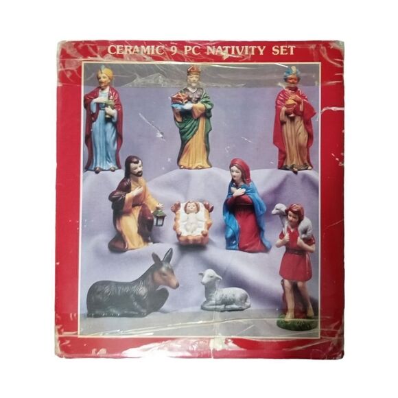Vintage Ceramic 9 pc Nativity Set Mersco Wholesale Christmas Decoration