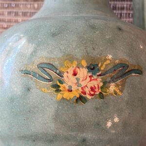 Sweet and pretty ceramic bud vase with pretty floral decal on front. Approximately 5 1/2 inches high. No cracks.