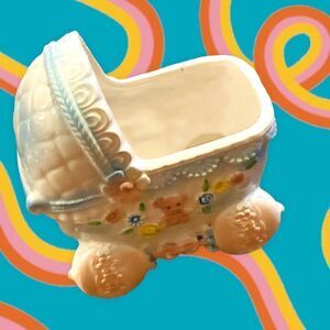 Vintage Ceramic Baby Carriage Buggy Pram Planter