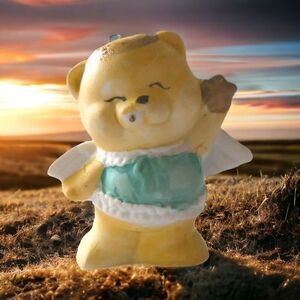 Vintage Ceramic Teddy Bear Ornament Handpainted 1980s Guardian Angel Wings. Condition is pre-owned and vintage. No chips or cracks. Please see photos for detailed condition. Unbranded.