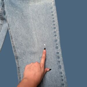 Vintage light wash mom jeans. Fitted through the butt and thighs, straight leg. Mid rise. 100% thick cotton denim. In good condition, one spot on the front left leg and some sun fading on the back. Labeled as a size 4, read and compare measurements to your own carefully!