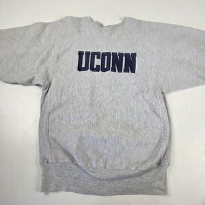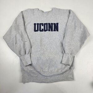 Vintage Champion Reverse Weave UCONN Sweatshirt Gray Distressed Pullover Sz XL
