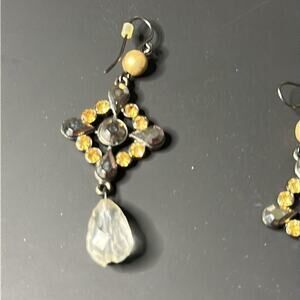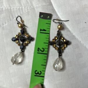 These earrings are absolutely stunning and shiny. They are a chandelier, earring with brown and gold stones. Please feel free to let me know if you have any questions.