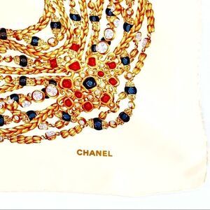 Vintage Chanel Satin Silk Jewel Design Scarf